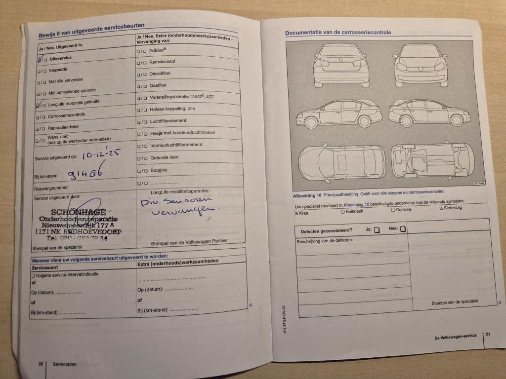 Deze Golf is (jaarlijks) netjes onderhouden en de boekjes zijn keurig ingevuld aanwezig. Het laatste onderhoud is recent uitgevoerd bij 91.486 km op 10-dec-2025.